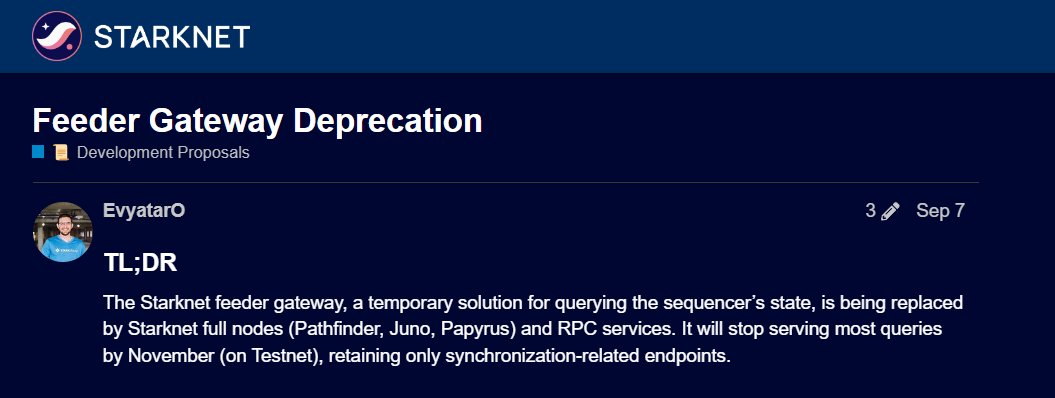 This Thursday (Dec 21st), Starknet's feeder gateway will deprecate making progress towards decentralization.