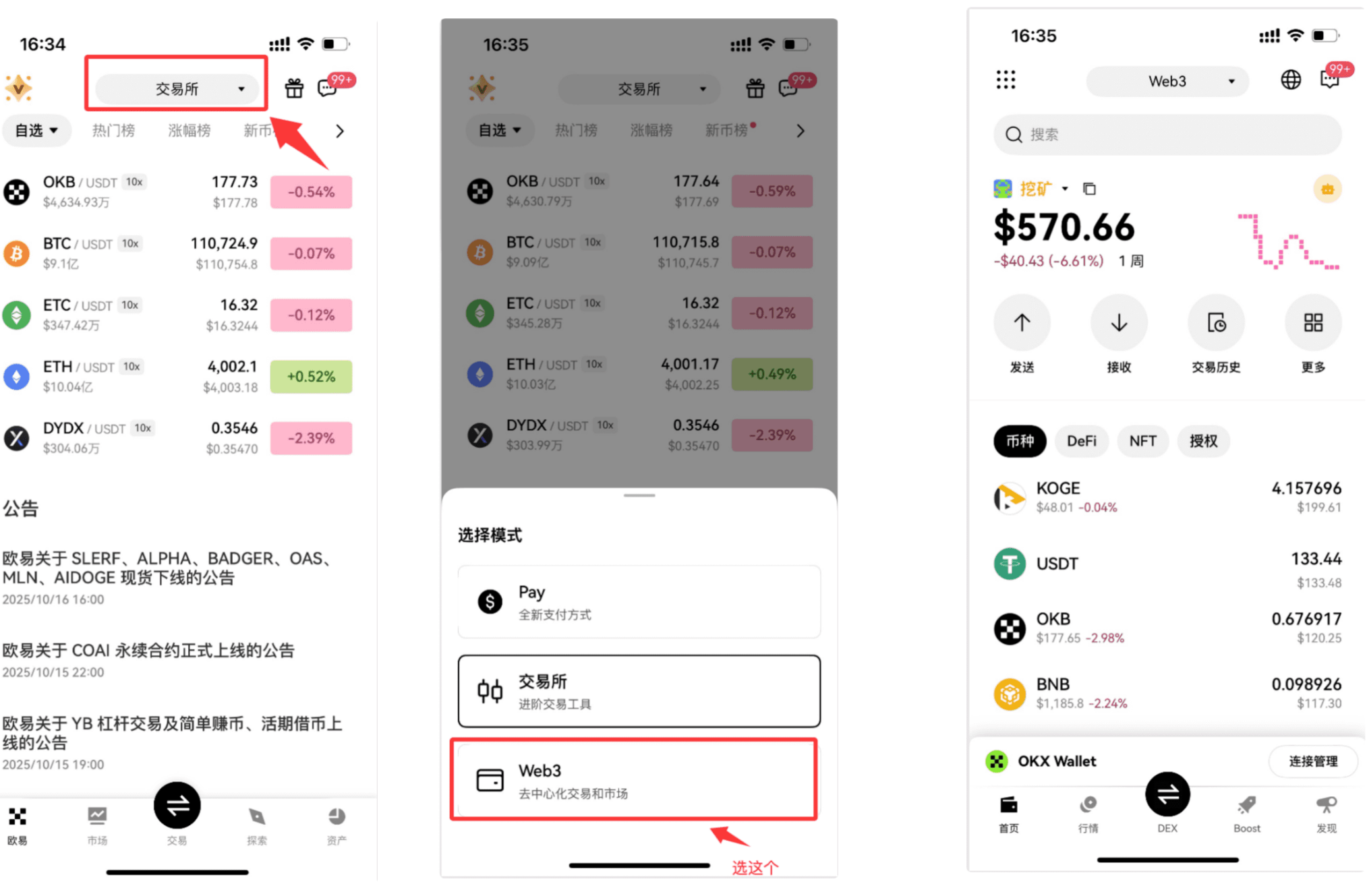 After downloading, open the OKX wallet, click on "Exchange" at the top, and select "Web3" from the pop-up options. This step will take you to your exclusive on-chain operation interface, but you're not fully prepared yet; you still need to create your own wallet, which is your "digital ID" in the Web3 world. The process is quite simple: after opening the wallet interface, click the "…" icon in the upper left corner, find "Wallet Management" in the expanded menu, and then select "Create Wallet." In just a few steps, you can have an on-chain wallet.