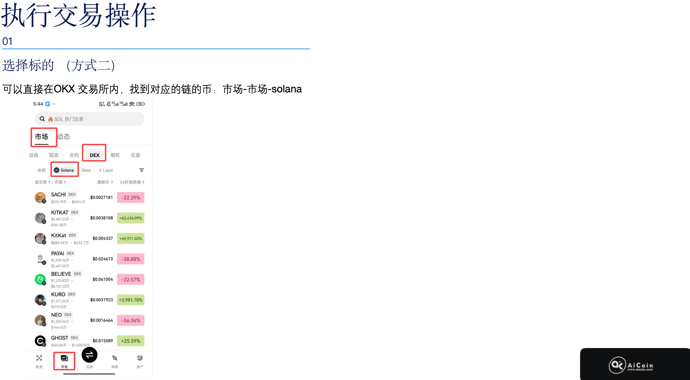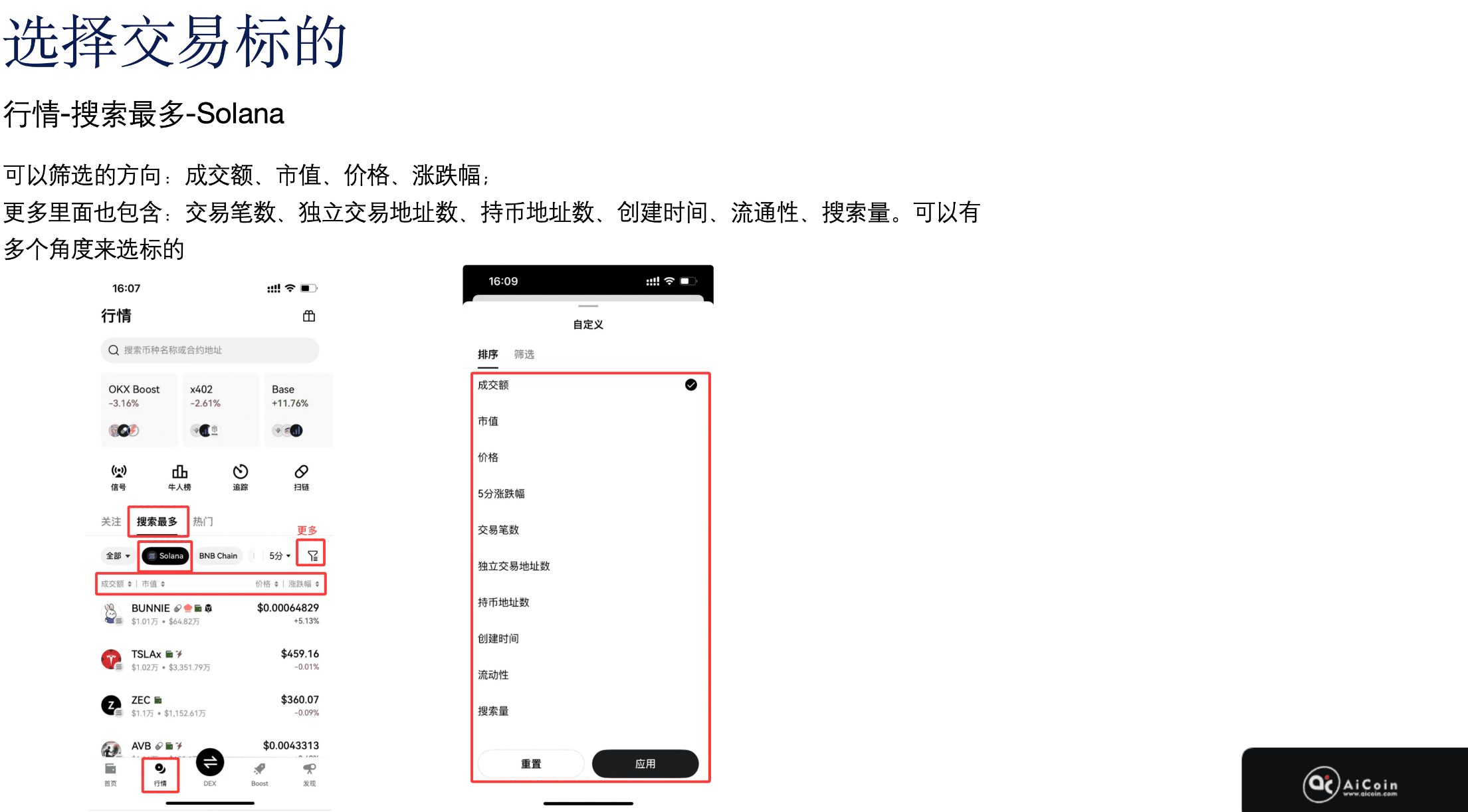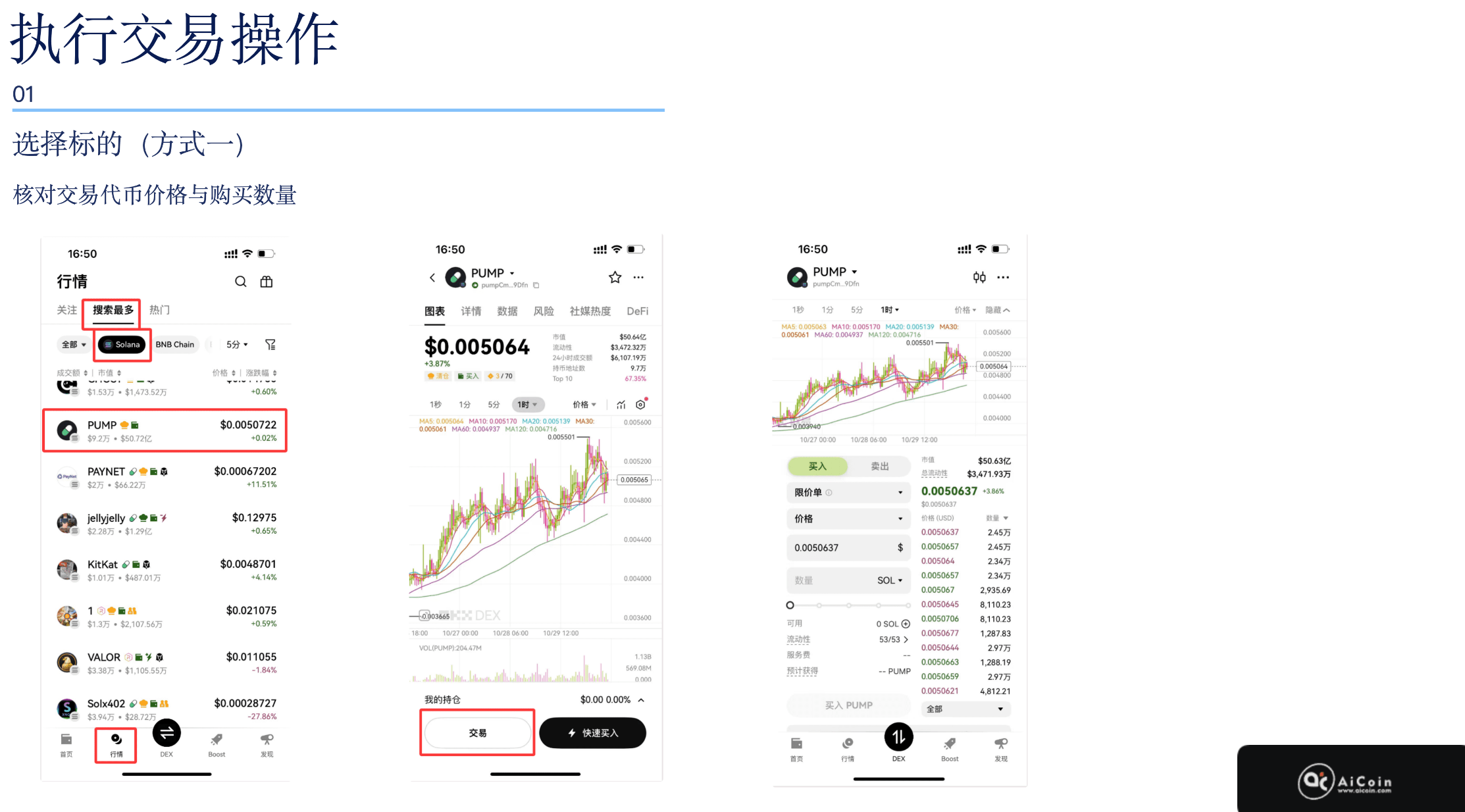 Once your funds are ready, the most pressing question is "how to buy and sell coins." I will explain this part in detail, as it is the core step for beginners. First, there are considerations when selecting trading targets. As a beginner, I recommend prioritizing the following types: coins that KOLs frequently mention and have clear benefits, coins with high liquidity and relatively stable market capitalization. If you're unsure how to choose, you can also follow the articles published by the AICOIN Research Institute, which contain many similar analyses and tutorials.