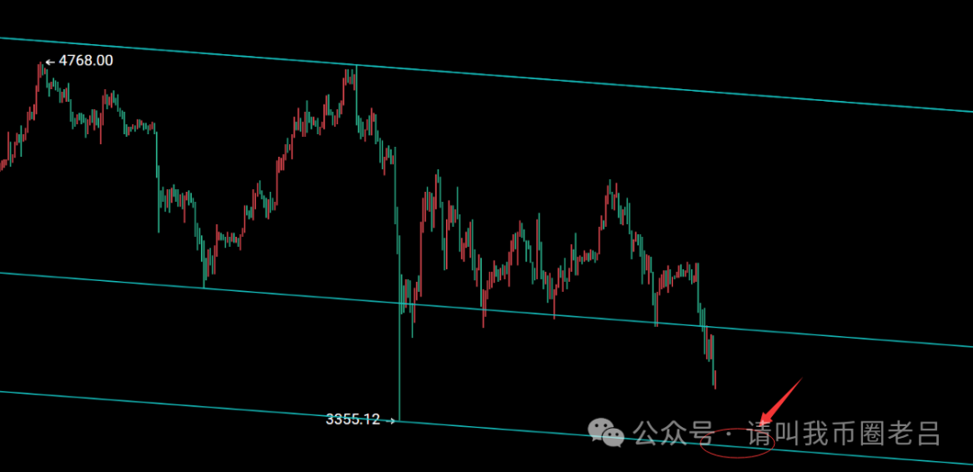 区别:目前比特币在10月10号大跌之后,形成了二次反弹低点,也就是103450美元,今天刚好就是也刚好在这个位置形成短暂支撑,所以,比特币的空我认为需要稍微保守一点,毕竟形态上强于以太坊,所以同时在下跌的过程中,比特在加速,也就是要追上以太的下跌形态,称为补跌,回头看以太,已经破位了前期二次反抽低点3640美元,并且早间已经完成形态转换,所以空单,可以稍微激进一些。这是思路上的不同。