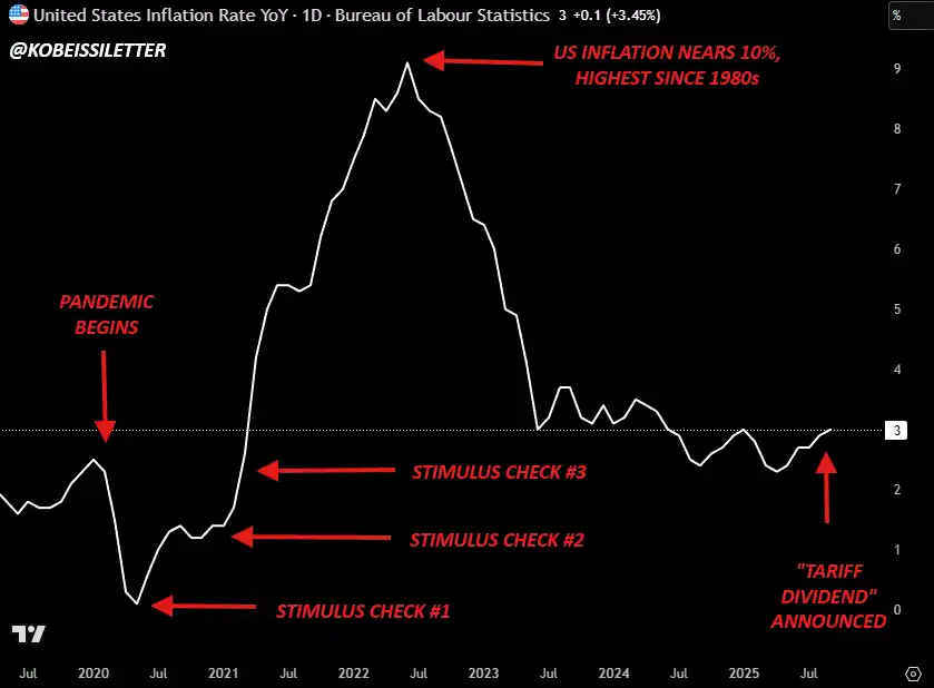 According to investment analysts from the Kobeissi Letter, referencing the distribution model of past pandemic stimulus checks, approximately 220 million American adults currently qualify to receive these stimulus checks. Formally, this sounds like a "fiscal innovation"; in essence, it is a replay of a political script. First, shout the slogan, then stimulate the market's reaction.