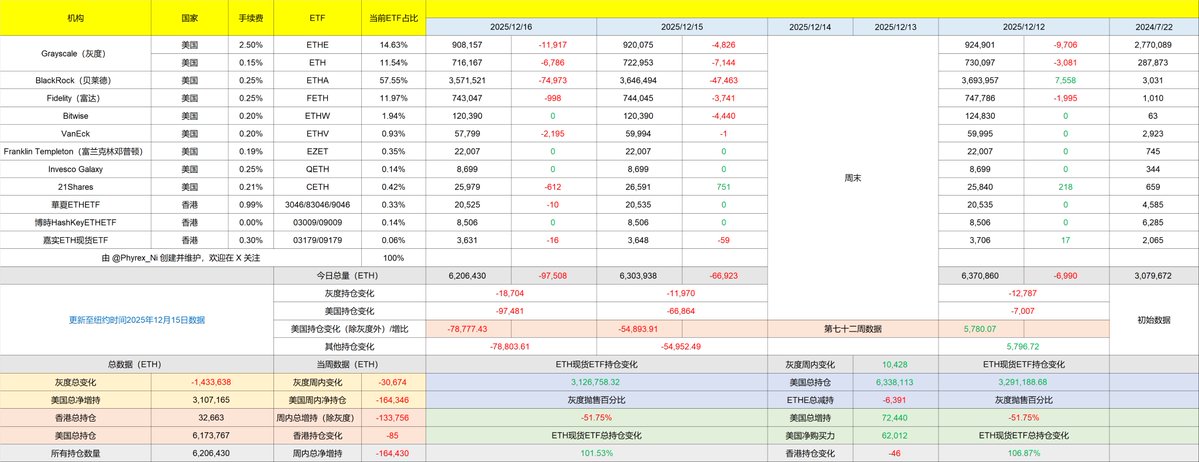 周二 $ETH 现货 ETF 的数据有多差呢,是自2025年8月13日以来最大的一次单日净流出,将近10万枚 ETH ,其中贝莱德的投资者在周日两天就流失了超过12万枚 ETH ,如果说 $BTC 的投资者还是处于看戏的模式,那么 ETH 的投资者已经有部分开始恐慌了。