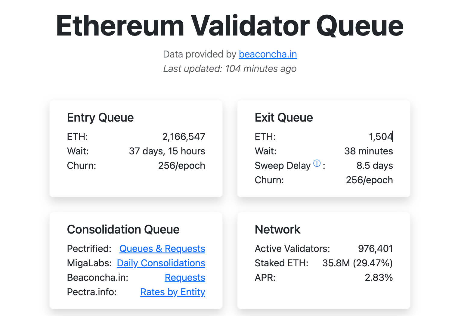 更直观的数据体现在于,以太坊质押需求的显著回升。据 Ethereum Validator Queue 最新数据,当前约 216.65 万枚 ETH 正排队等待进入以太坊验证者网络,预计等待时长达到 37 天 15 小时,而退出队列仅约为 1504 枚 ETH(此前退出队列甚至完全清空)。同时,以太坊总质押量也达到 3580 万枚 ETH,占总供应量的 29.47%,活跃验证者数量接近 98 万。