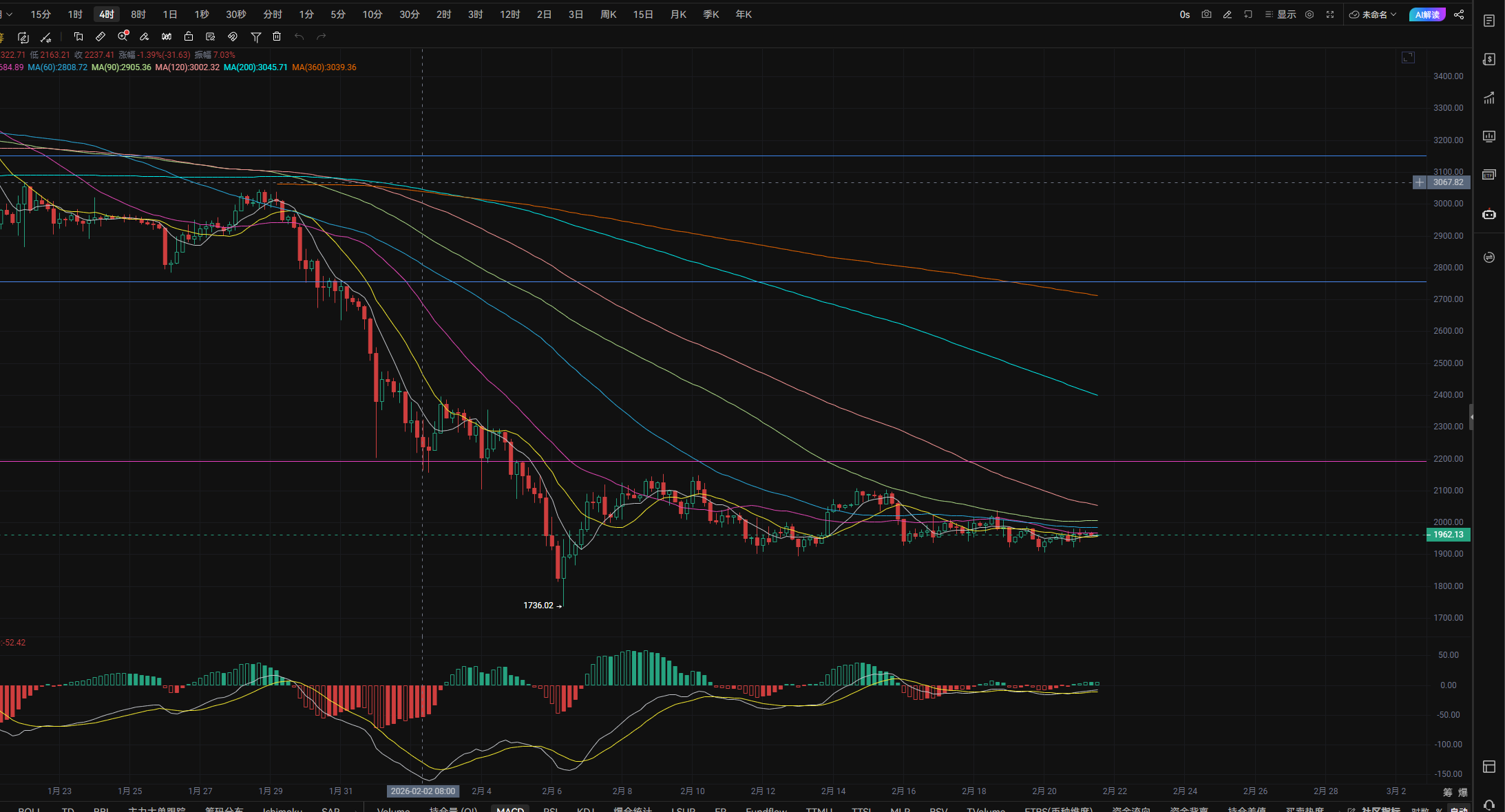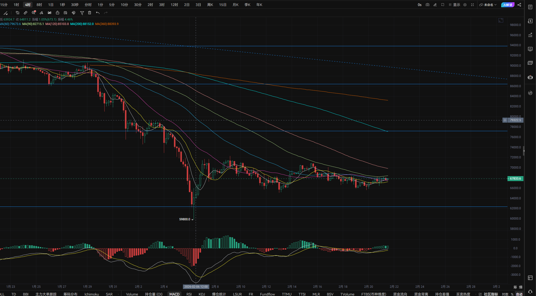 After the tariffs have been implemented, one ongoing game is the geopolitical conflict between the U.S. and Iran, and another is the main narrative of the first half of the year, Trump and the Federal Reserve. However, after the cancelation of tariffs, the pressure on the Federal Reserve has decreased significantly, and new gains may emerge. From the data of Bitcoin, the turnover rate has not changed dramatically, indicating that until now, the cancellation of Trump’s tariffs has not caused significant waves in the cryptocurrency market. However, it is worth noting that Trump often likes to stir things up on weekends. It's the weekend again, and Trump stated again before the market closed that he is preparing to impose a 10% global tax within five months based on the existing tariffs. Currently, the impact does not seem significant. A rebound to the 68330-68830 range could be a point to enter short, with targets looking down to the 65900-63000 range.
