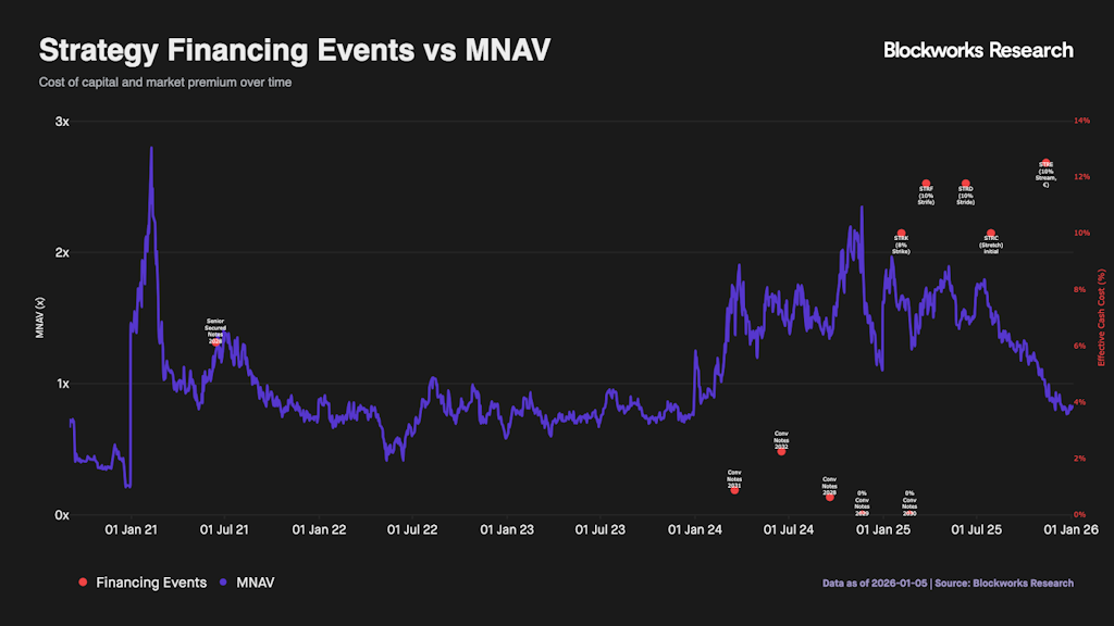 Strategy 重新成为比特币市场上可见的国库买盘,但与 2024-2025 年相比,融资背景已大相径庭。