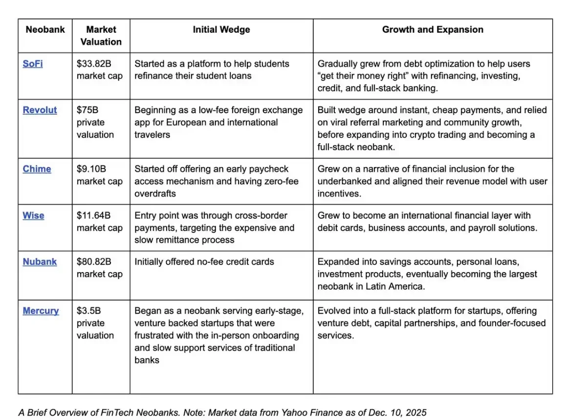 This trajectory closely resembles that of the rise of fintech new banks: success has never been solely about "issuing cards" or "creating an app," but mastering a specific user group—from students (SoFi) to low-income families (Chime) to international travelers (Wise and Revolut)—and building trust, loyalty, and transactional scale on that basis.