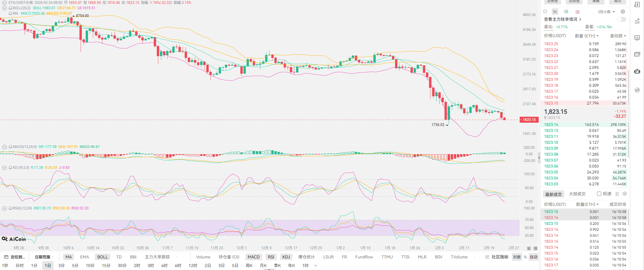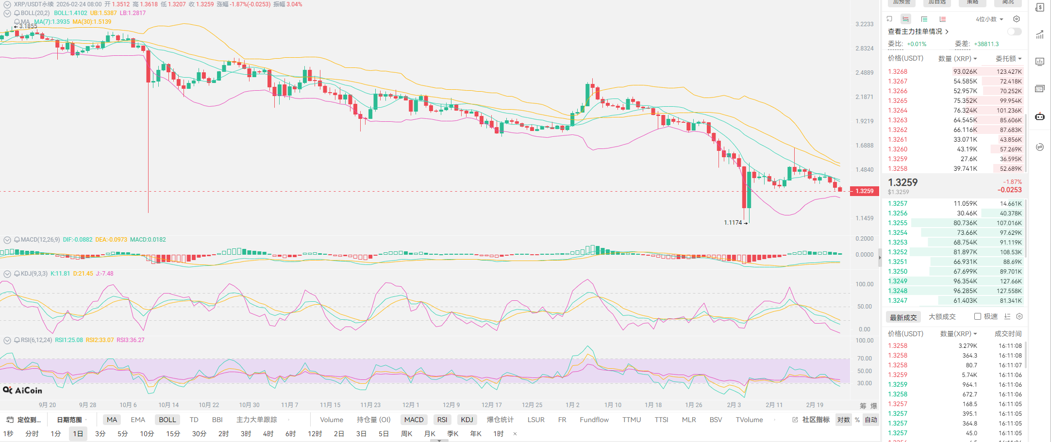 对XRP的总结就是上限不高,但短期具有收益,这个短期针对的是川普在任期间,也就是2-3年之内有翻倍的空间,建议也是各位有一定的收益尽量清仓。XRP也就讲到这里,近期还是围绕合约展开,昨日给到大家的支撑位置,也已经跌破,空单收益也都公布。近期延续下行的态势较为明显,以太的下一支撑位置已经延续到1800以下,跌破之后至少还有20-30点的空间运行。各位如果还想进场,尽量以空单形势为主,等待上行一波之后再行进场,而多单的位置,老崔的看法是1800附近即可进场,收益永远只能维持在30-50点区间。比特币则更为简单,现在的趋势或许就像川普所讲,再摸6W给到老美进场的机会,之后才会有反弹的空间存在,这些走势几乎与我们前期预测相同,区间运行依旧会维持在2个月左右,保持区间进场即可,现阶段会出现短期一个反弹现象,上方压力依旧存在,不会有明显的突破,如果各位想要进场,尽量问一下老崔。今日较忙,文章就更新到这里,有问题直接问。