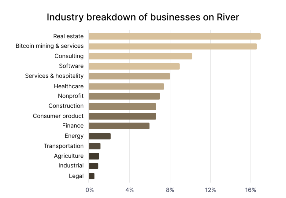 These businesses are mostly small to medium-sized companies that do not publicly disclose their Bitcoin strategies. River serves over 3,000 businesses across various industries and has witnessed the fastest adoption growth among small private companies.