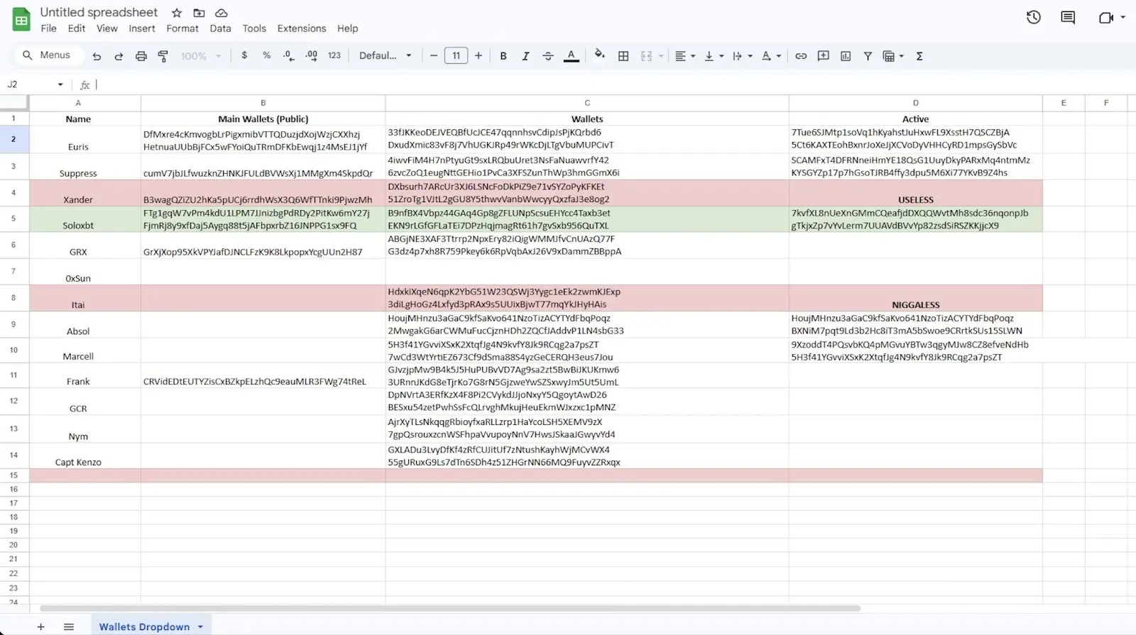 建立组织和规则,如另一位 Axiom 员工 Ryan(Ryucio)协助查找用户信息、聘用 Gowno 担任版主,并将这些私人钱包汇整进 Google Sheets 进行追踪。