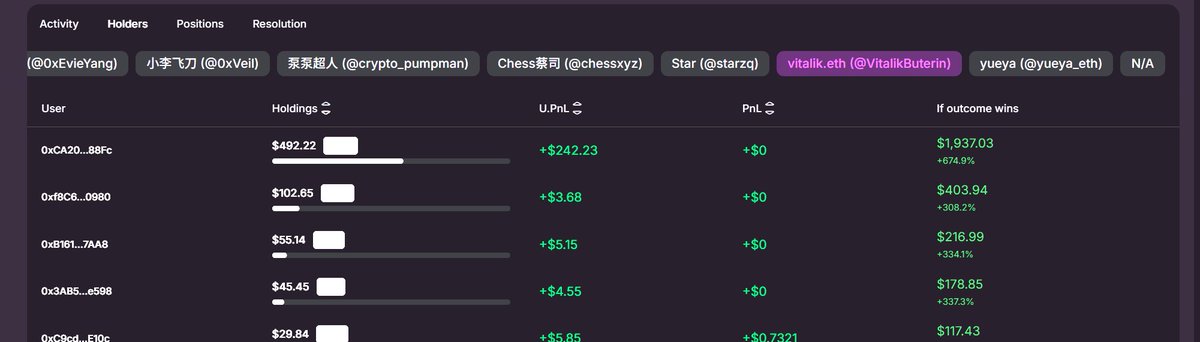 Address 88FC, as the second earliest buyer, spent $492 betting on Vitalik.