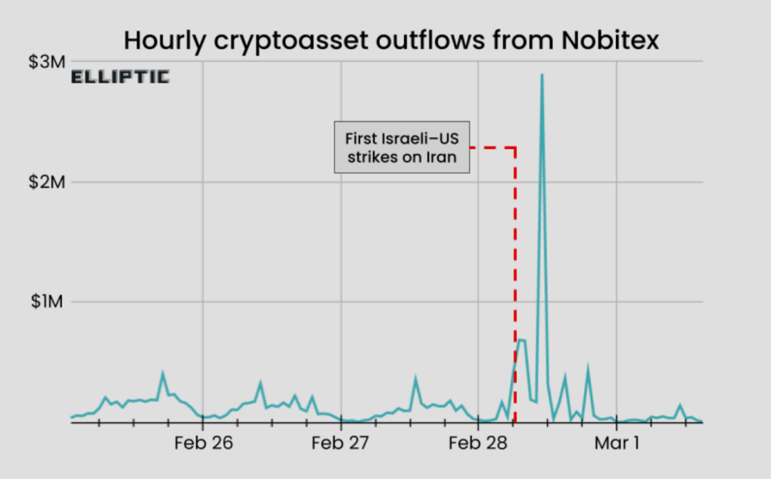2026 年 2 月 28 日,美国与以色列联合对伊朗发动首次空袭。就在消息传出后的数分钟内,伊朗最大加密货币交易所 Nobitex 上的资产开始以异常速度向外涌出。而在中东的另一端,战争持续几天后,以色列特拉维夫证券交易所 3 月 2 日收盘创下历史新高。