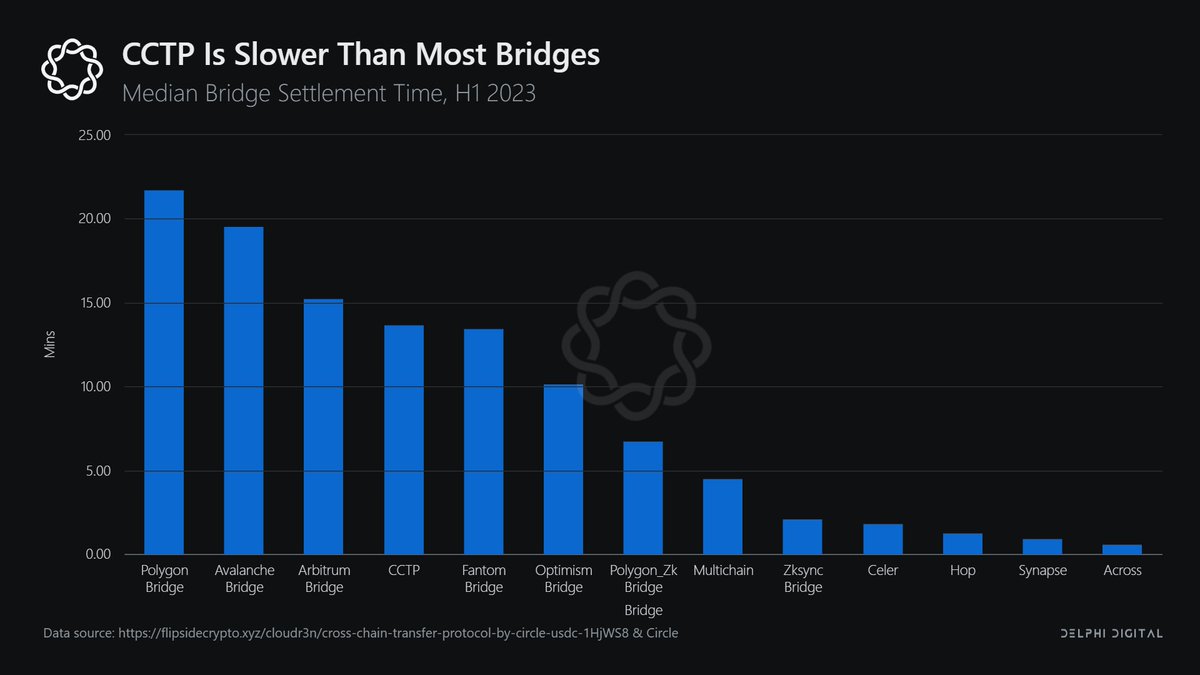 CCTP and canonical bridges have distinct advantages and disadvantages. For one, they solve most of the liquidity/ UX fragmentation issues by increasing the share of canonically denominated assets. On the other hand, they are slow due to their conservative nature. Rollup bridges may take hours or weeks and CCTP may take tens of minutes to hours to be validated.