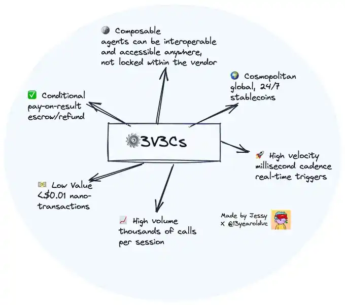 Whether on the consumer side or the enterprise side, we will see some new user behaviors that were previously unattainable: complex, condition-triggered transactions that conform to the "3V3C" model, automatically completed by agents in the background. Especially as large language models (LLMs) become smarter and operational costs decrease further, the cost savings from these transactions will far exceed the required token fees.