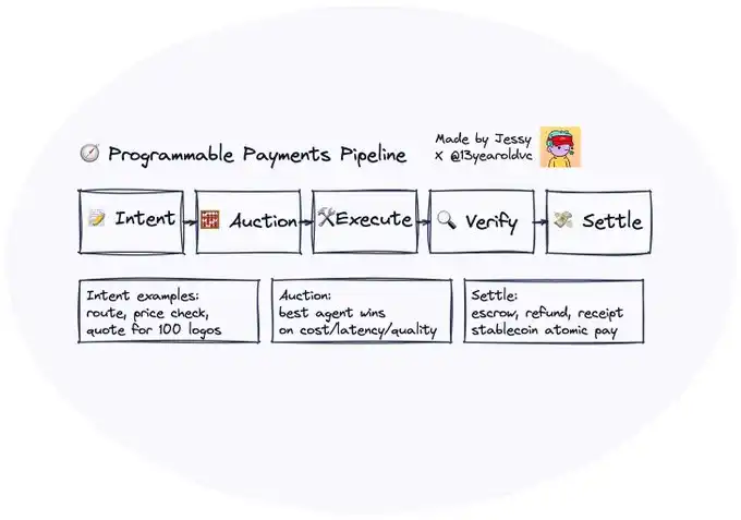 This is why we need a new programmable payment structure. Agents should be able to: set budgets and rules; prepay fees; settle instantly upon task completion, accompanied by proof of work.