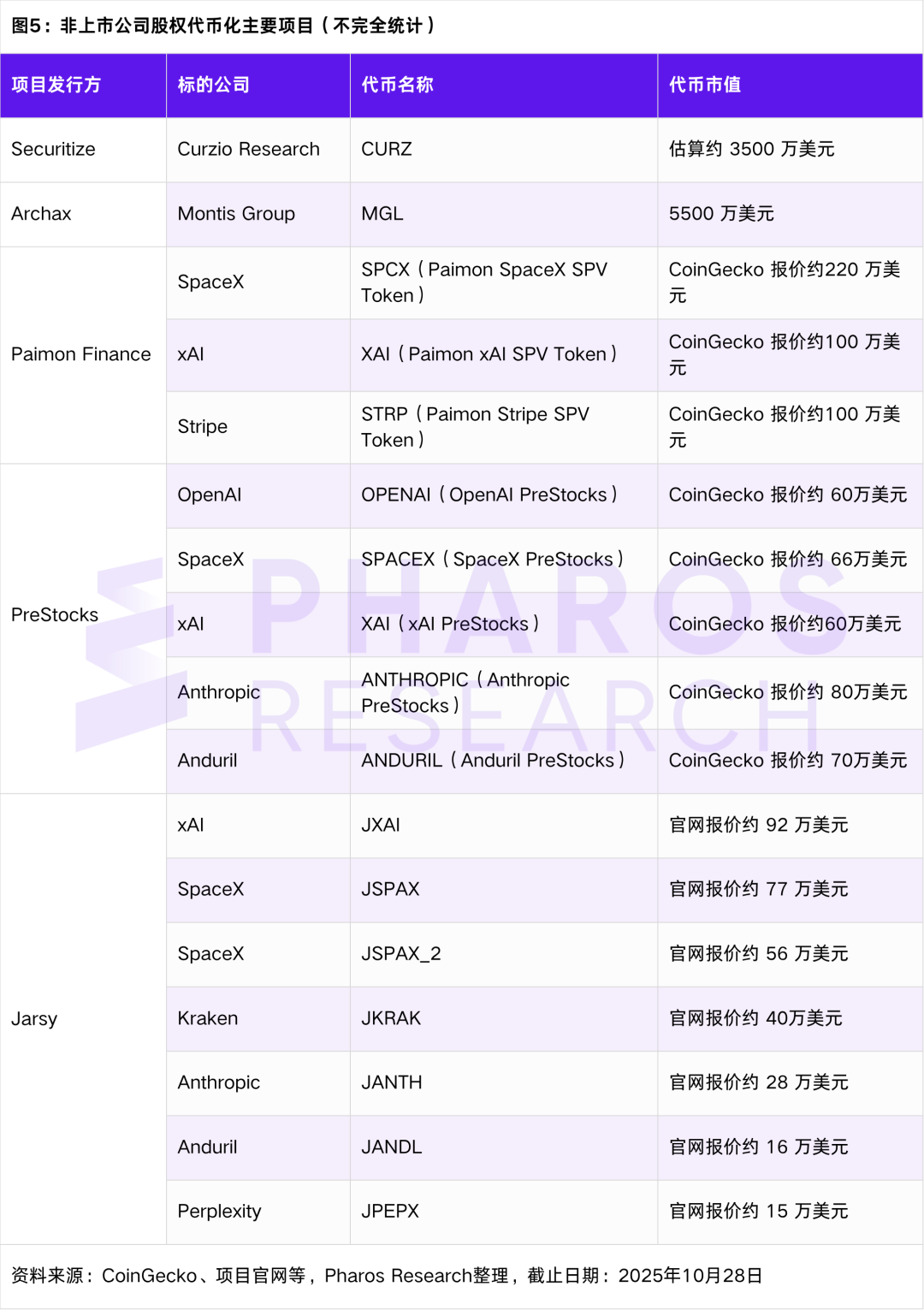 (1) The market status presents a stark contrast between "trillion-dollar potential" and "tens of millions in reality." Although the total valuation of unicorn companies has exceeded $5 trillion, the current market value of tradable equity tokens is only in the tens of millions, indicating that the market is still in its very early stages, with targets highly concentrated in leading companies.