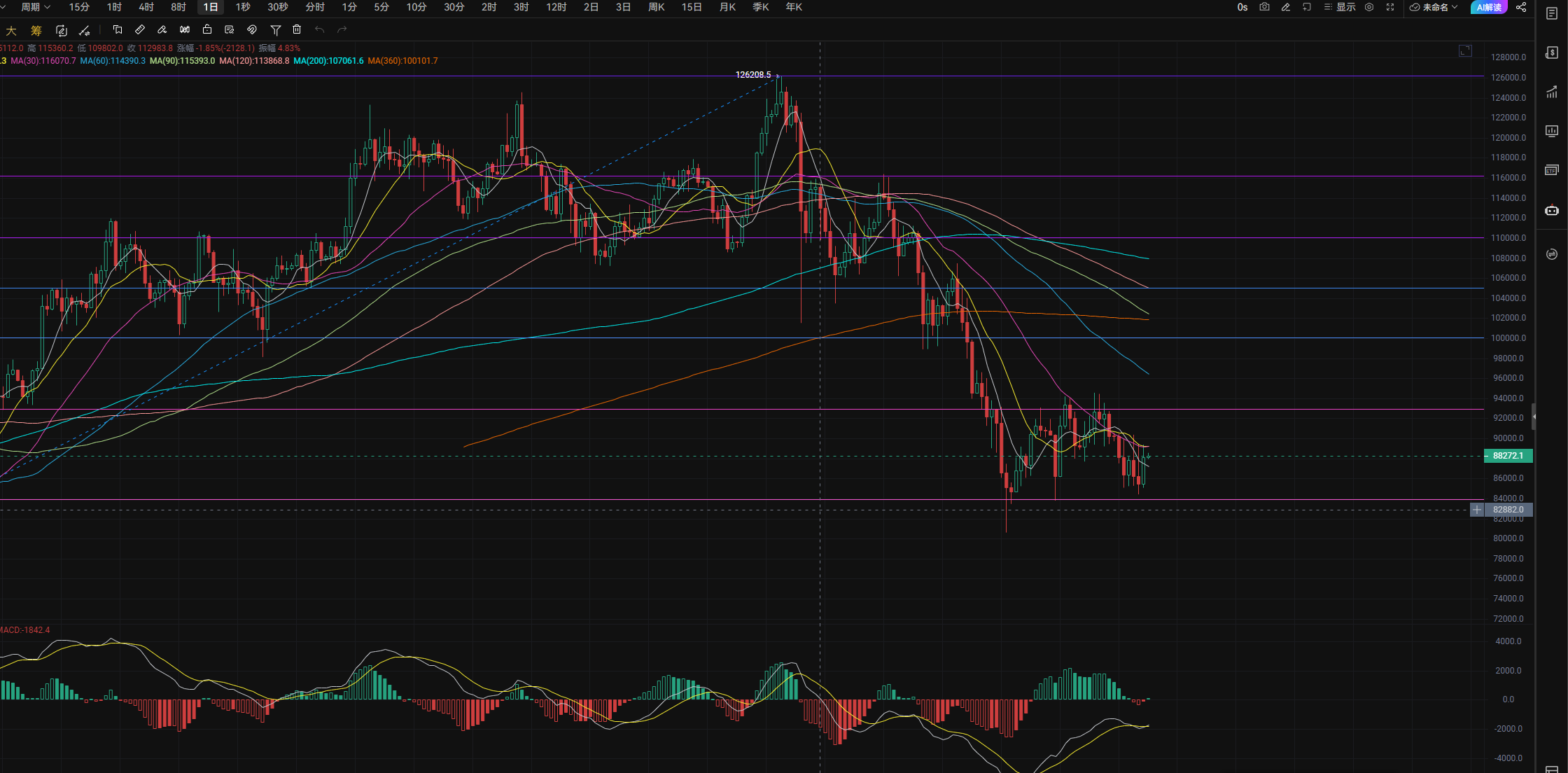 From a spatial perspective, the resistance above the price is around $88,600, and the support below is around $81,000. There is still enough downward space for profit; after a rebound, we can continue to short. If there is another spike, as long as it does not break the previous spike high of $89,500, the bearish trend remains unchanged.
