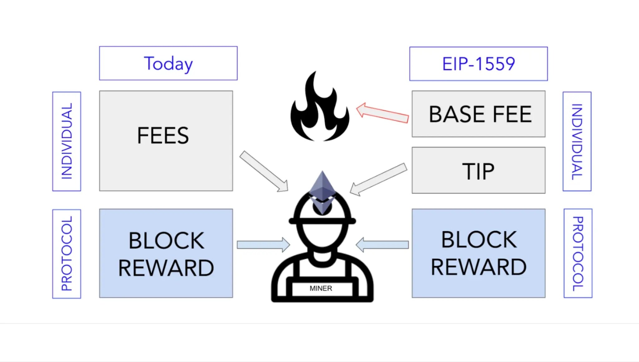 We should ask another question: why has the yield on ETH staking continued to decline, significantly lagging behind SOL? I believe that the passage of EIP-1559 is a very important reason. The purpose of this proposal is to reduce the inflation rate of ETH, thereby further optimizing Ethereum's economic model. Before the passage of EIP-1559, nodes received the base fee + tips from traders for on-chain transactions. After the passage of EIP-1559, nodes only receive the tips paid by traders, while the base gas fee is directly burned to ensure a stable deflationary mechanism in the ETH economic model. Ethereum nodes and ETH stakers have lost an important source of income.