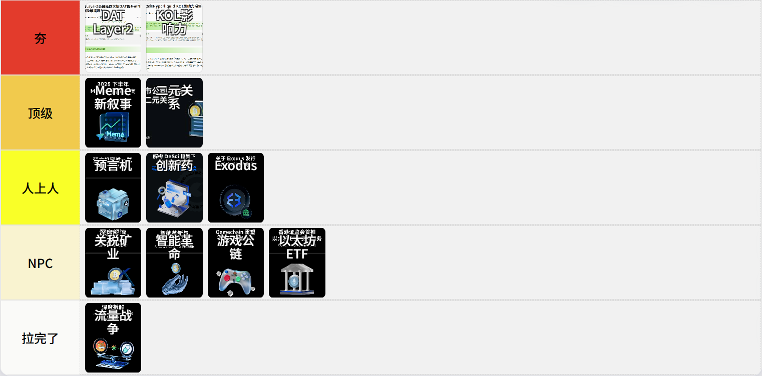 Recently, it has become popular online to rank everything from "from rough to fine," as if everything can be ranked in this way. As a practitioner in the Web3 industry, my perception of 2025 can be summed up in two words: "Acceleration." After experiencing major global events like "Trump's cryptocurrency," "tariff wars," "the genius bill," and "1011," it feels like the entire capital market and the crypto world have been pressed on the acceleration button since Trump took office. The events that will occur in 2025 will equal the total of what has happened in the past 2-3 years. Meanwhile, as a content creator, I have consistently produced one in-depth piece of content every month. However, in these final days of 2025, I reread these pieces and found that while some were quite good, others were less satisfactory. So, at the end of 2025, I will use the "from rough to fine" framework to rank my own articles.