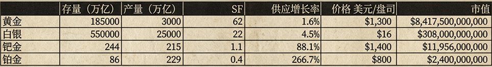 This is indeed the case; gold retains value better than other metals listed. The goods we use in our daily lives, such as food, phones, computers, and cars, have SF values far less than 1, meaning they have never been scarce. Why? Because as long as there is demand for a product, it can be produced. Once someone wants to hoard it, the price will rise, prompting more businesses to produce it, which will inevitably lead to a price drop.