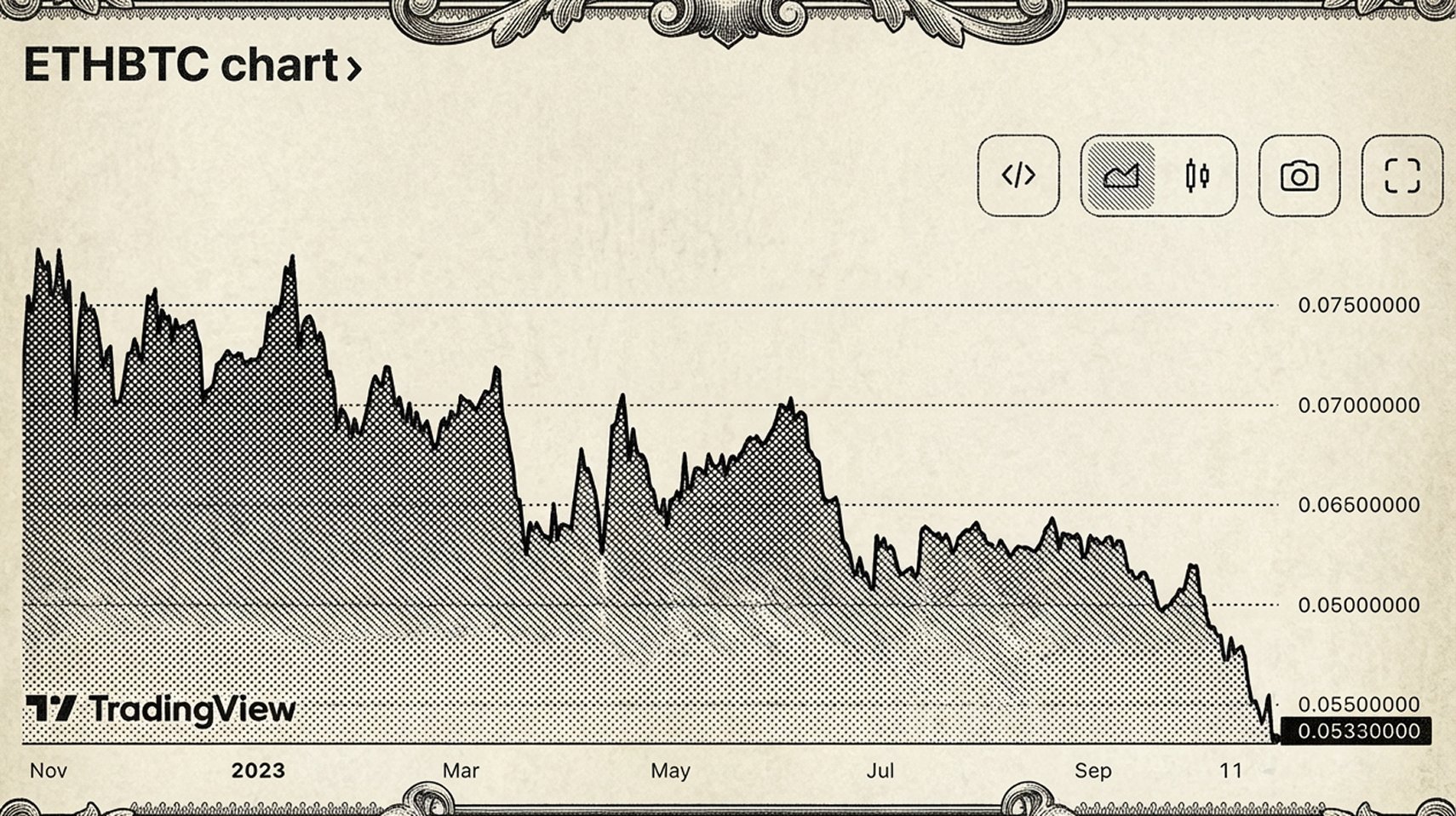 In the past year, the exchange rate between Ethereum and Bitcoin has been the perfect trap, with every red line hiding a pile of corpses. I have no doubt that one day a bull market will return, and Ethereum will rise again, but if you are choosing an asset over a ten-year period, you have only one choice in the entire crypto market: Bitcoin. As long as the crypto market continues to thrive, Bitcoin will not wither. If Bitcoin is ultimately disproven, then the entire crypto market will cease to exist.