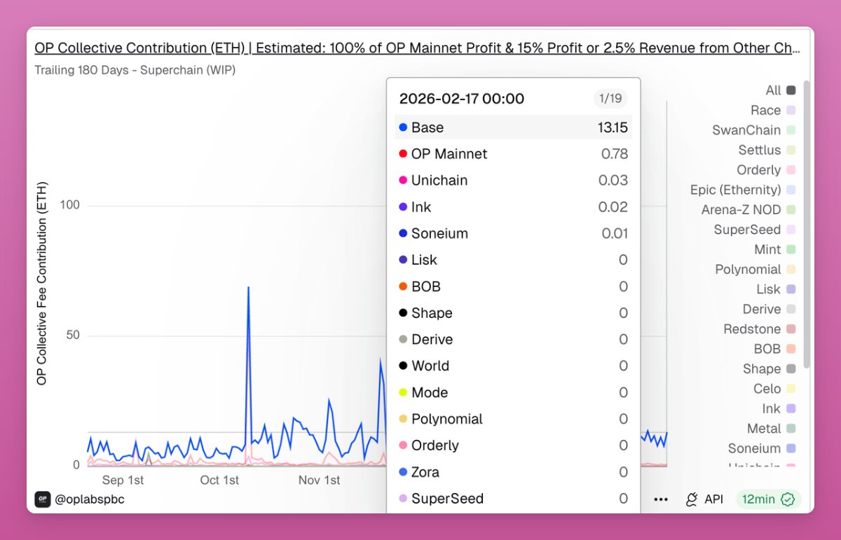 Base paid 13.15 ETH/day vs 0.84 ETH from every other Superchain chain combined.