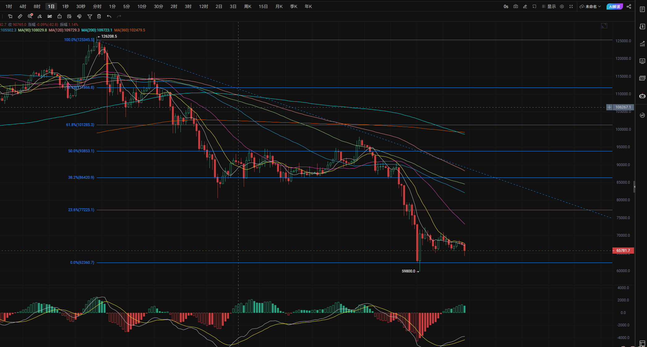 Other data remains relatively normal. However, liquidity still has no obvious improvement; the help of tariffs to the Federal Reserve may also take time to manifest. The first half of this year remains challenging; market sentiment is very tense, and a collapse could occur in an instant. If it rebounds to the 65500-66300-66800 range, you may consider a short position, targeting down to 64350-62300.