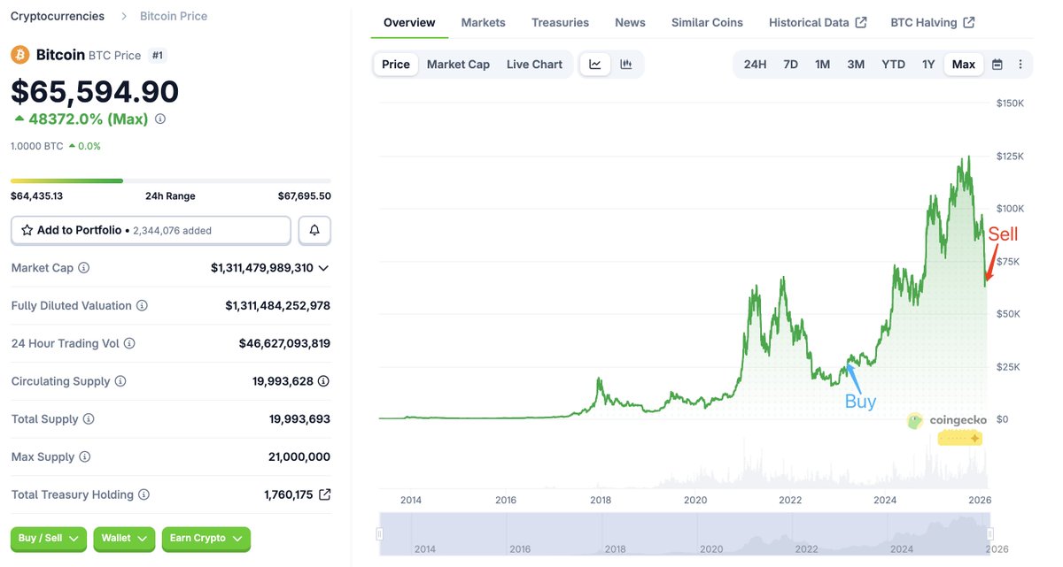 At the peak, his unrealized profit once reached $64.37M(+364%).
