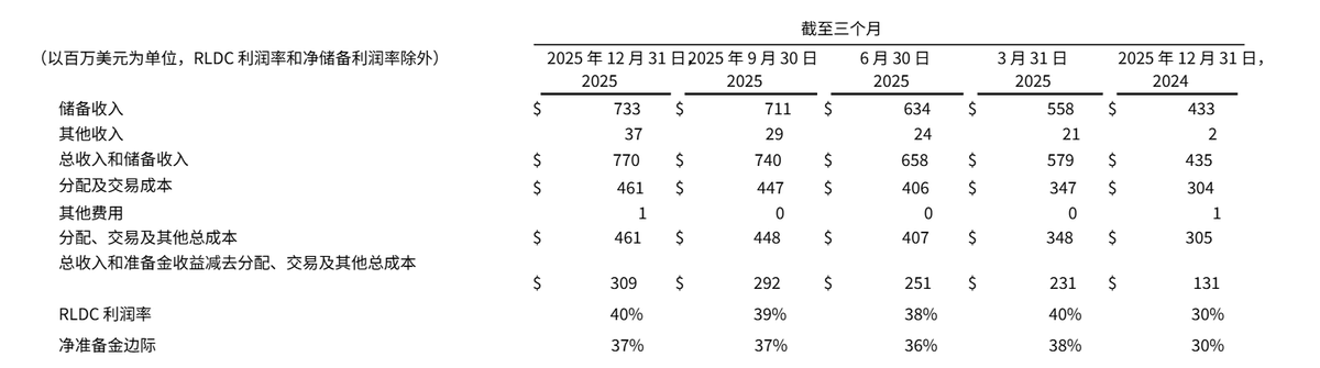 The financial report also clearly states that the main source of income is derived from reserve income, while other reserve income is also increasing. However, even by December 2025, other income is only about 37 million dollars, which is merely 1/20 of reserve income. As we all know, even Circle itself has admitted that a decrease in federal fund rates will directly impact the income structure.