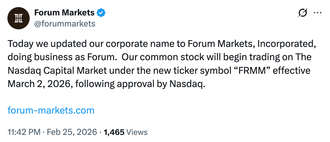 It should be clear that this name change is not merely a simple rebranding, but a complete severance from the past Ethereum holding model. The new name "Forum Markets" conveys several strategic signals. Firstly, the name change strengthens the financial attributes. The term "Forum" reflects openness and collaboration, suggesting that the company will connect traditional capital markets with blockchain financial infrastructure; "Markets" indicates a shift from single asset holding to a diversified asset trading model.