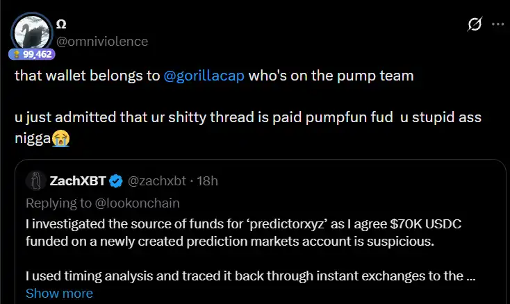 After obtaining the investigation results, Pump.fun's partner gorillacap used the time advantage to pre-bet in the prediction market, earning $400,000 while leveraging ZachXBT's inherent traffic attributes to ruin Axiom's reputation.