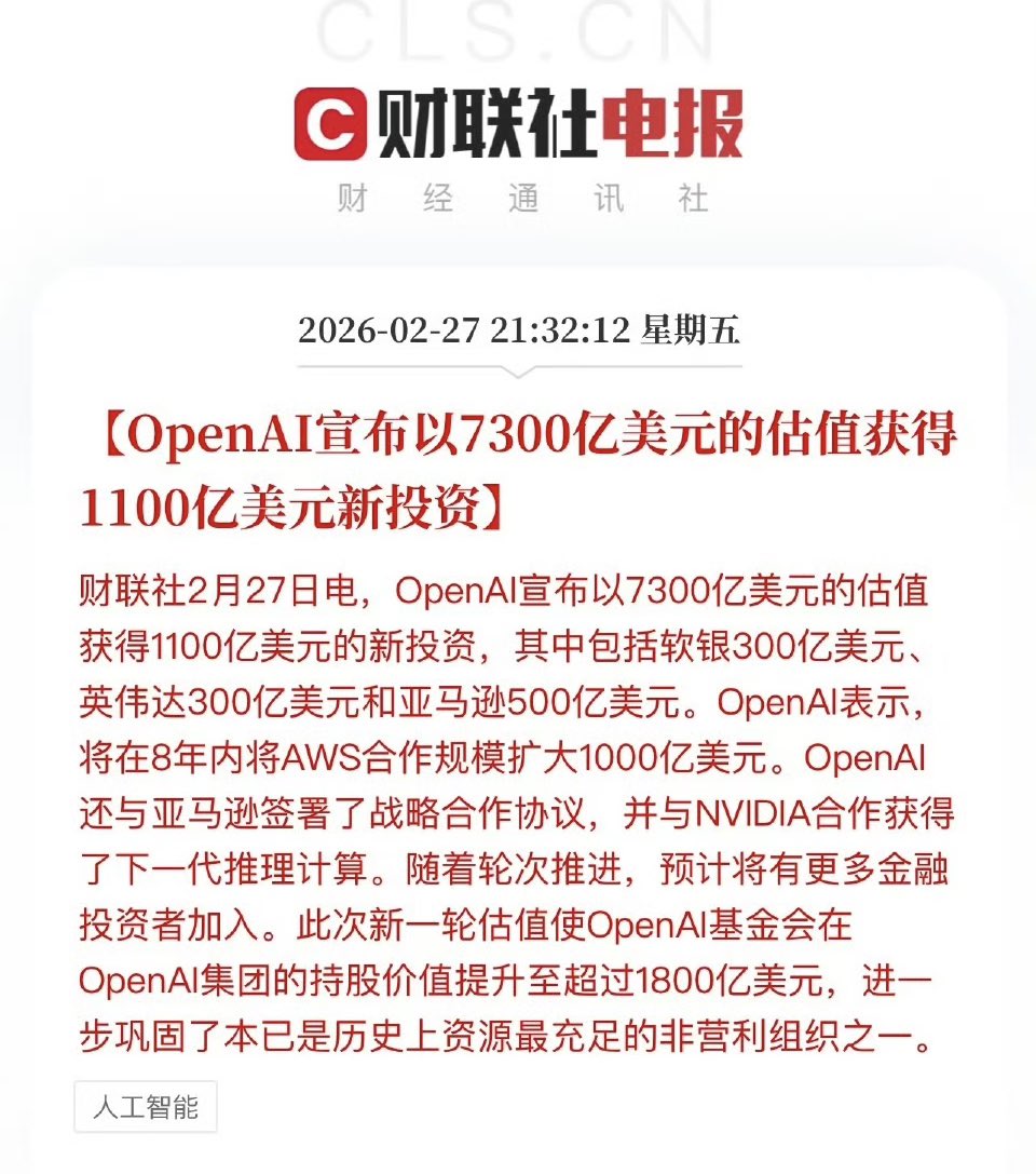 ❗️The largest single round of financing in human history has been born, and the AI industry has entered an unprecedented stage—