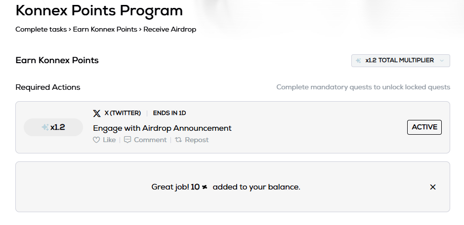 On January 20th, Konnex announced the launch of the points task platform on the X platform.