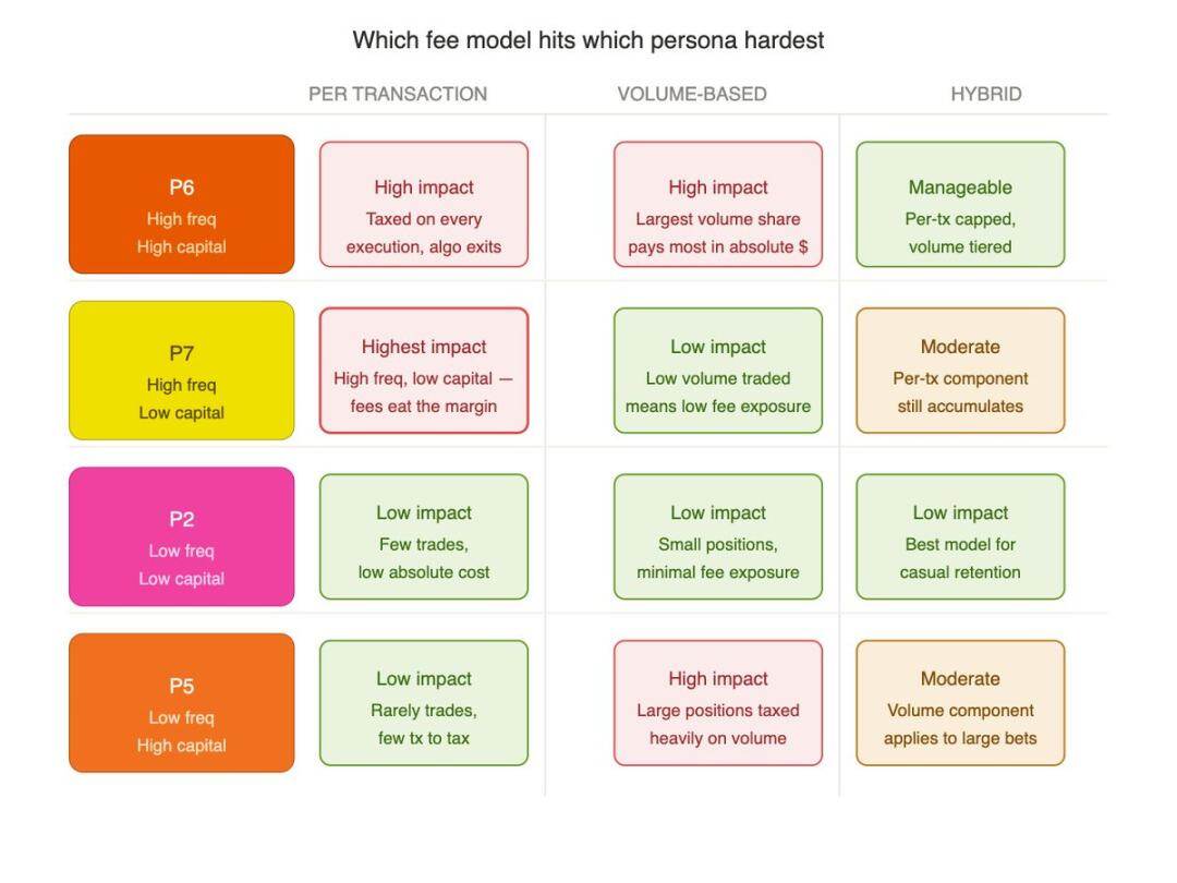 A fixed transaction fee model will overly suppress the interests of the P6 high-frequency high-capital and P7 high-frequency small groups, yet it is precisely these groups that sustain the liquidity foundation necessary for the platform's survival.