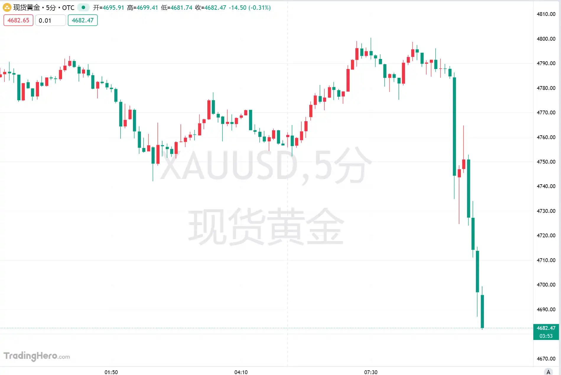 As Trump hinted that military action might escalate soon, international spot gold and silver prices plummeted, with spot gold falling below $4,700 per ounce, a drop of more than 2% during the day. Spot silver dropped more than 3% during the day, currently reported at $72.54 per ounce. New York silver futures fell below $73 per ounce, down 4.13% during the day.