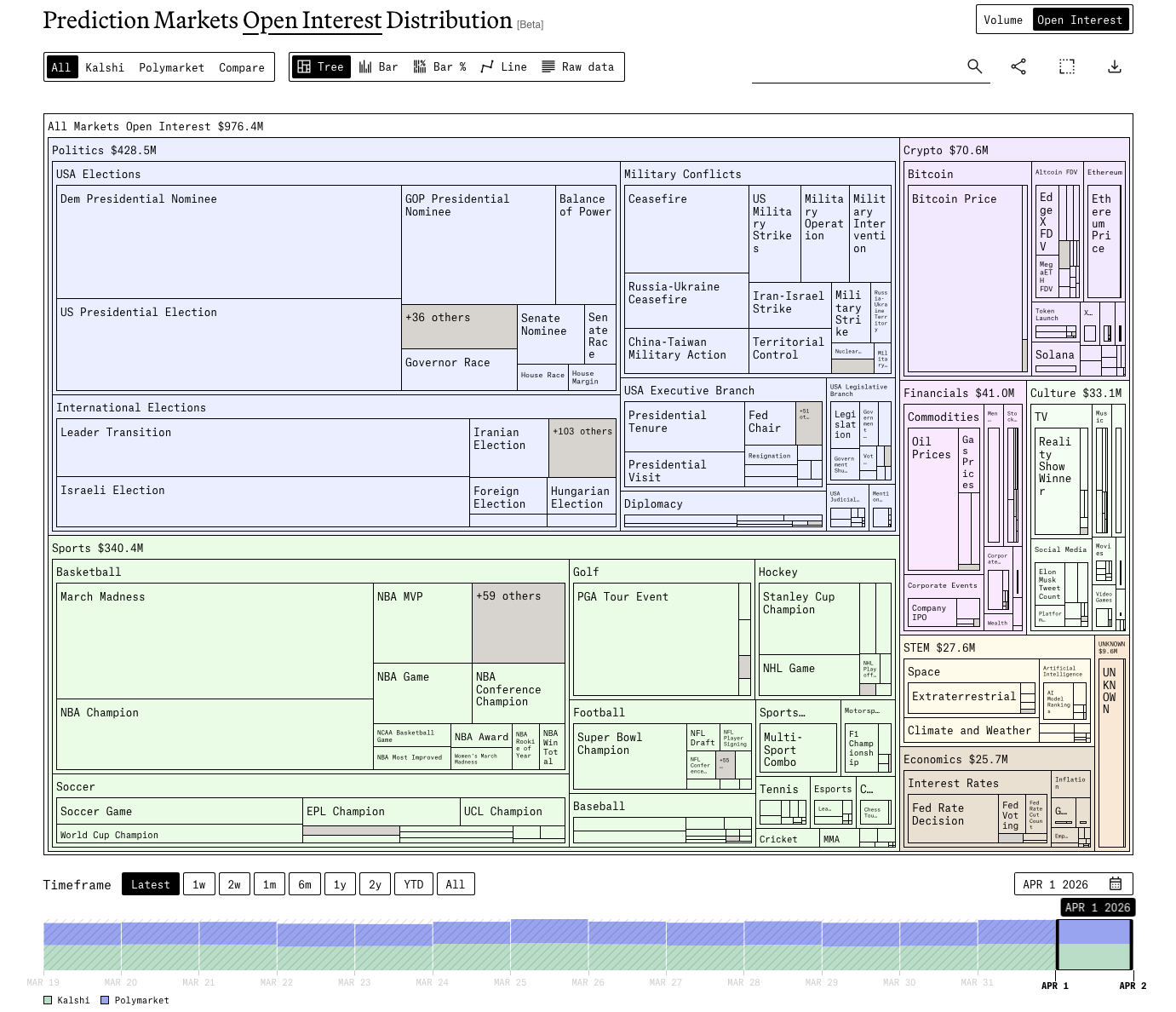 Figure 1 Distribution Map of Unsettled Contracts (Open Interest) in Mainstream Prediction Markets