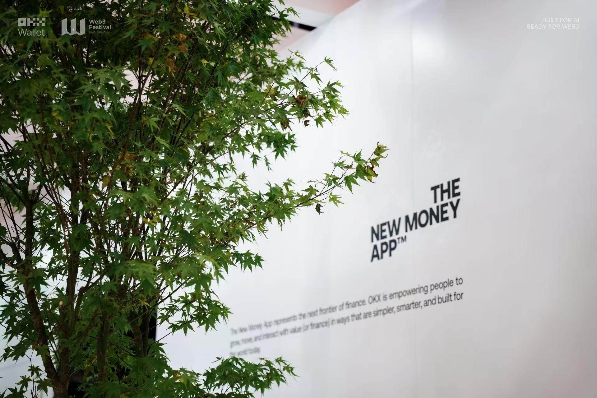 Passing through the bustling entrance of the exhibition area, the OKX Wallet booth, with its recognizable futuristic technology style, catches the eye first. The overall space primarily features a white theme, accented with green plant elements, injecting natural vitality into a calm and orderly visual system, creating an immersive scene that embodies both futuristic and ecological concepts, allowing the "on-chain world" to transition from concept to a perceivable reality.