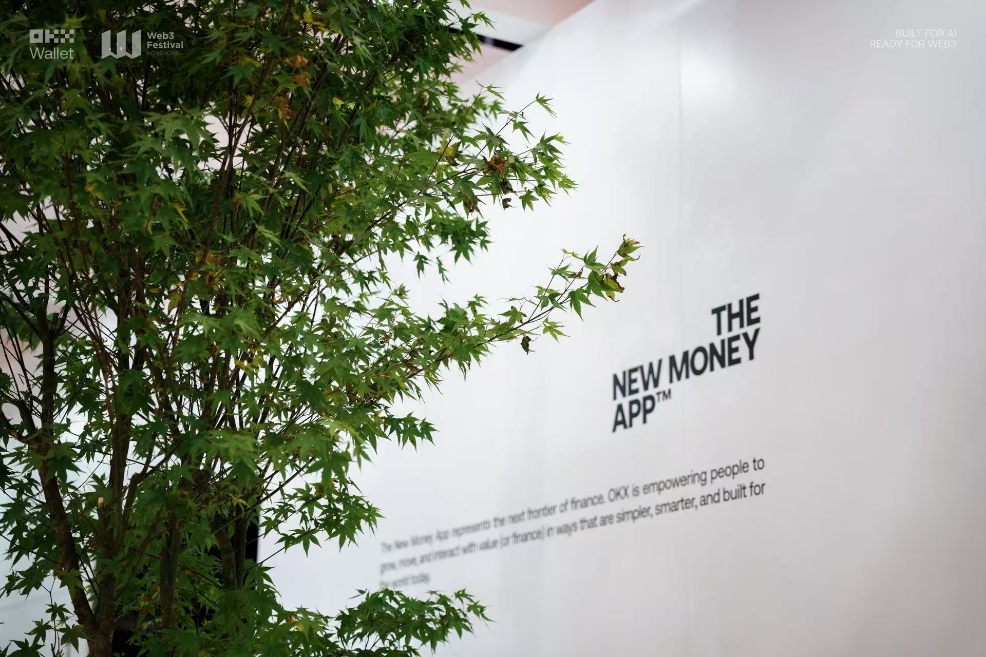 Passing through the bustling entrance of the exhibition area, the OKX Wallet booth catches the eye first with its distinct futuristic technology style. The overall space features a white color scheme, adorned with green plant elements, injecting natural vitality into a calm and orderly visual system, creating an immersive scene that combines a sense of the future with ecological concepts, allowing the "on-chain world" to transform from concept to a perceptible reality.
