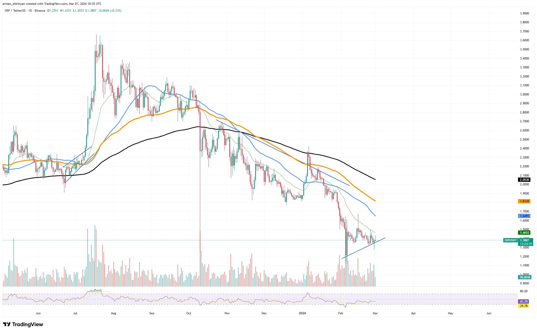 由 TradingView 提供的 XRP/USDT 图表