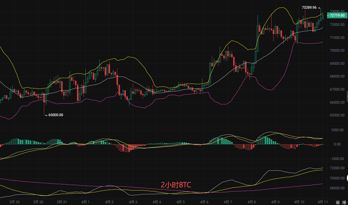 币圈丽盈:4.10多头总攻号角吹响!比特币突破72000后,暴涨行情已无任何阻力!最新行情分析及操作建议