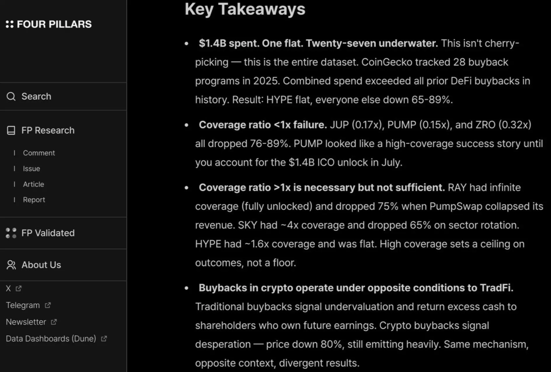 我很喜欢 fourpillars 的这份报告,它展示了高达十位数的回购几乎对帮助项目设定长期价格底线毫无作用。