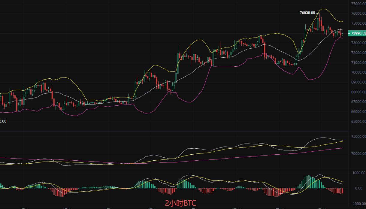 做空策略: 75200-75500,止损73800,目标74000瞄准73500