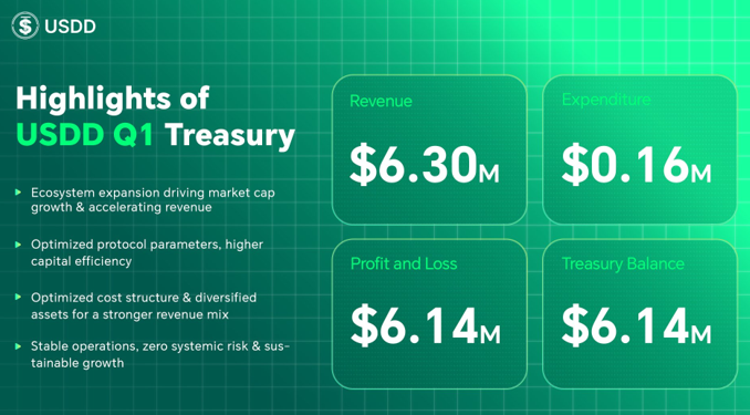 USDD 2026年第一季度业绩全面提速:收入与利润显著增长,总金库余额升至1391万美元