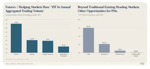 事实上,尽管预测市场当前规模仍然有限,但对冲市场本身却是一个体量巨大的领域。