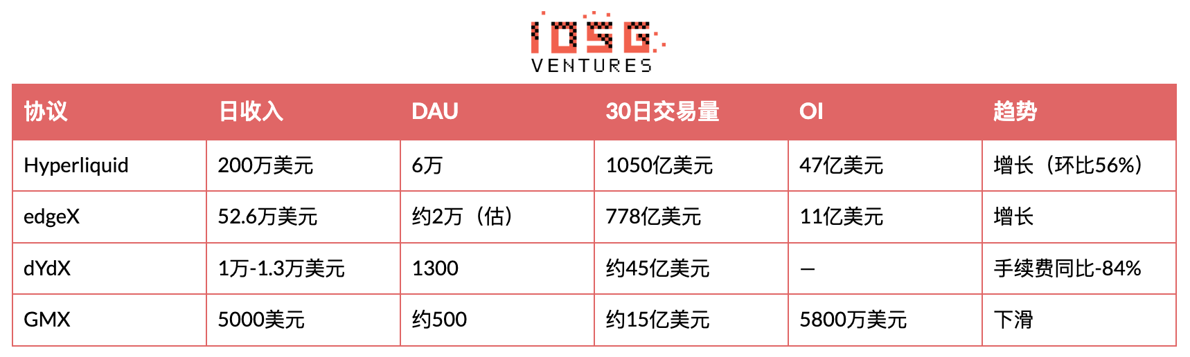 普遍认知:去中心化永续是一个有竞争的市场,dYdX、GMX 等与 Hyperliquid 争夺份额。