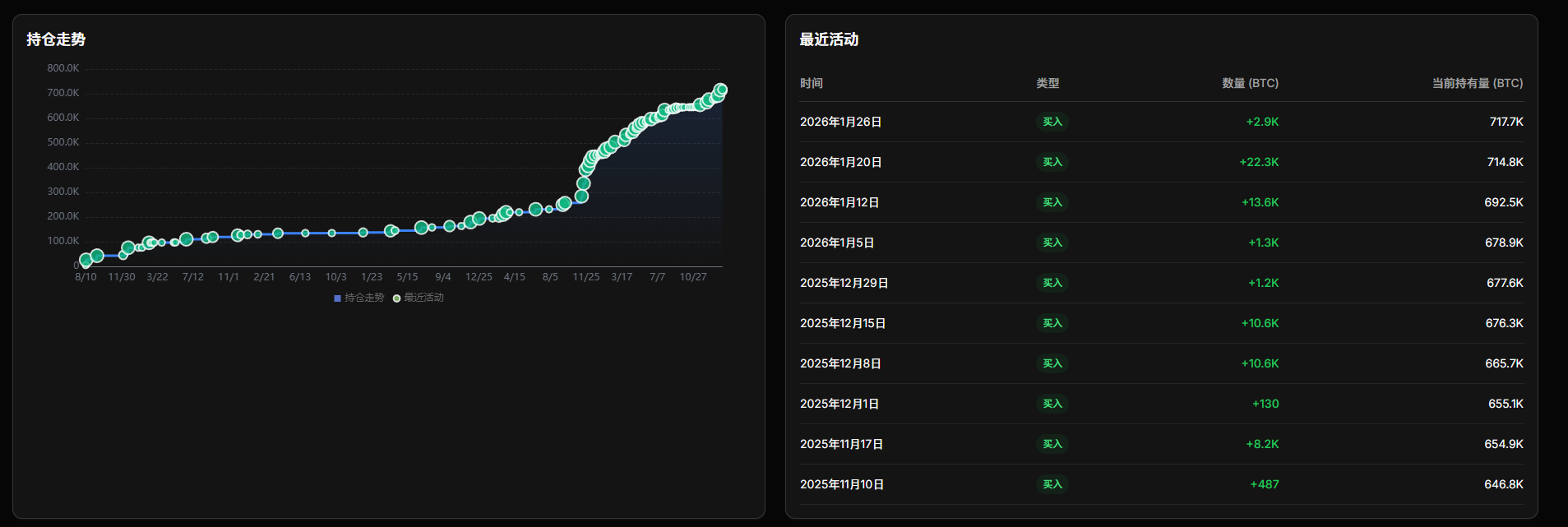 这种现象被市场解读为“龙头独舞”。在比特币价格低迷、市场情绪悲观的背景下,大多数企业对比特币望而却步,而Strategy则利用其通过发行股票和优先股(如STRK)募集的资金,几乎以一己之力扛起了上市公司增持比特币的大旗 。塞勒不仅是在为自己买入,更是在为整个行业扮演着“最后买家”的角色。