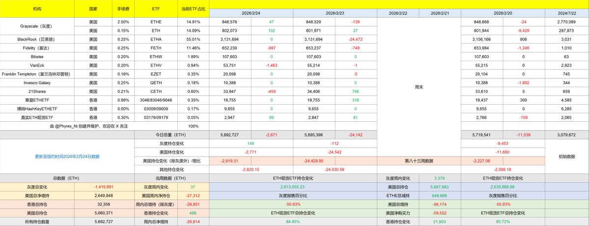 虽然 $BTC 现货 ETF 的数据不错,有超过 3,000 枚的净流入,但是 $ETH 现货 ETF 的数据则仍然是净流出,虽然流出量很低只有不到 2,700 枚,但确实能看到投资者的情绪还是较差的,尤其是贝莱德和富达的投资者在 Bitcoin 是净流入的,但是在 ETH 上一个是零变化一个是净流出。