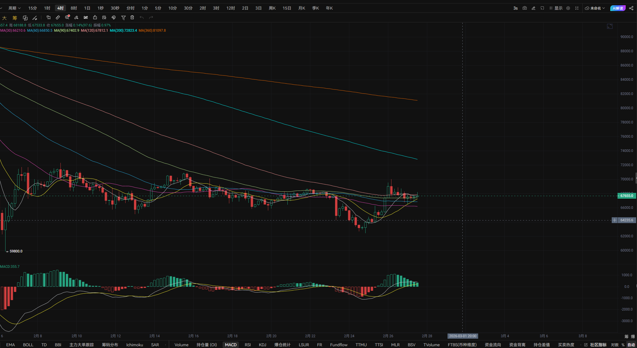 等等了。下方回踩66922-66627附近可进行接多,目标可看至68500-70000附近