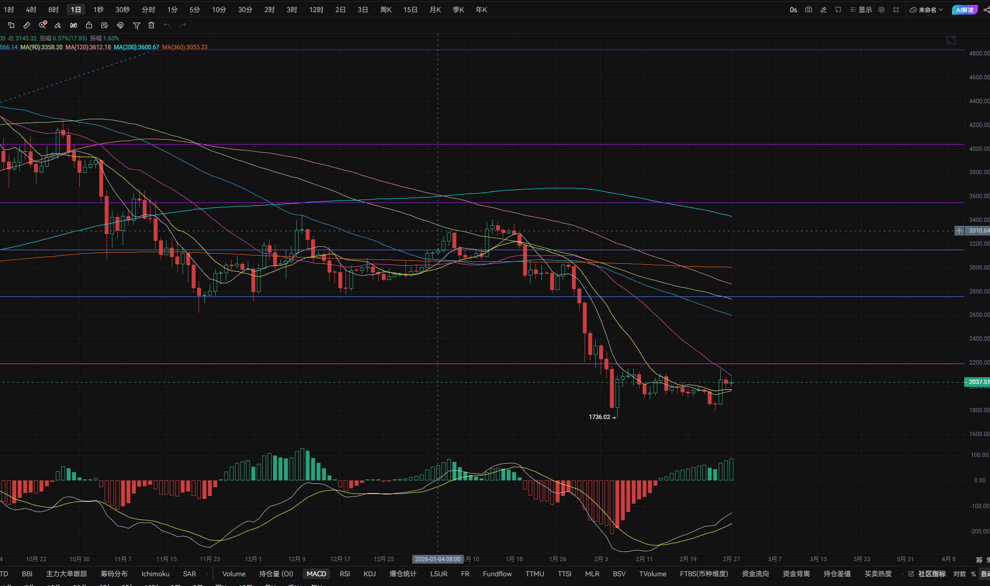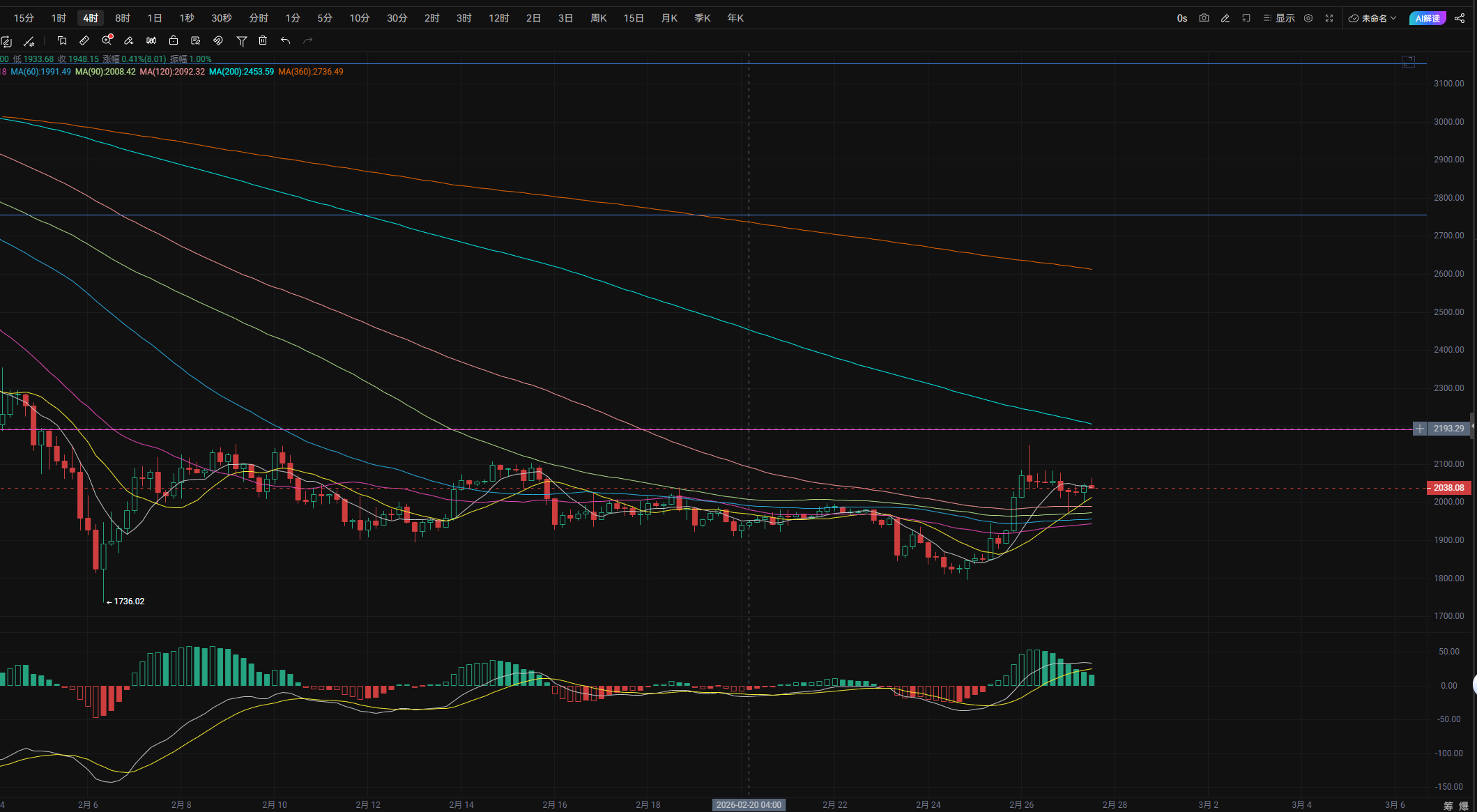 2.27震荡幅度趋于平缓,以太维持2000上方